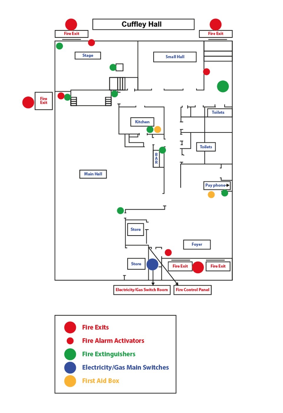 You should familiarise yourself and your guests with the Fire Exits. It is strongly recommended that the escape routes are demonstrated to visitors at the start of each event. The four Fire Exits are: